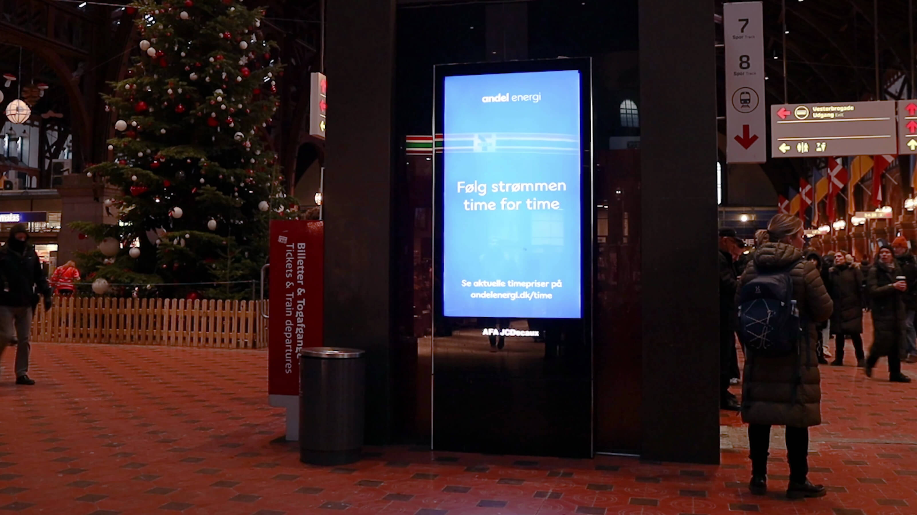 The solution ran across digital screens at DSB stations nationwide, displaying live pricing alongside clear, actionable tips on when to use electricity to save money.