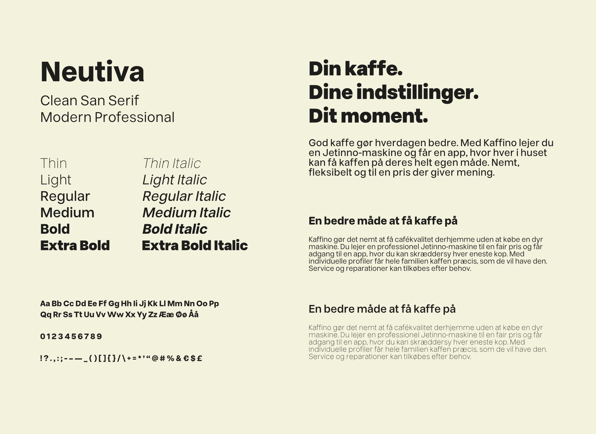 The brand is built around a modern, approachable, and premium feel, avoiding typical coffee clichés such as obvious beans, traditional symbols, and heavy brown palettes.