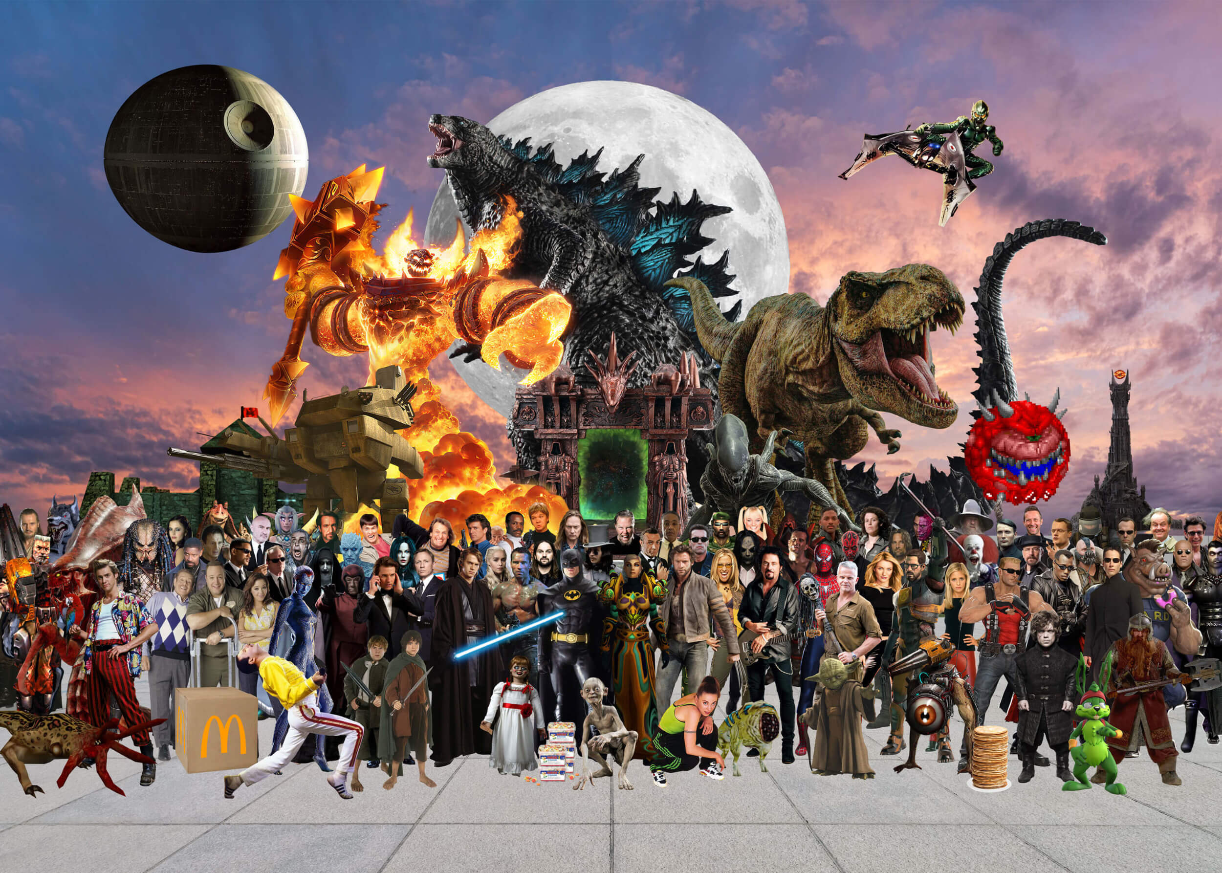This is a poster I made as a birthday gift for my dad. It’s meant to be a nostalgic tribute to the childhood my brothers and I shared at our dad’s place—all the memories we made together. The poster includes characters and elements from the most important movies and TV shows we watched, the many video games we played and the music we listened to. It also features the food and snacks we ate the most. It’s a big mix of nostalgia from our childhood. Below is the final edit and a “starting image” with all the cutouts put together before I began editing. I made it in Photoshop and it consists of 655 layers.